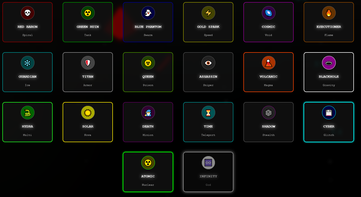 - Kimyasal Güçlendirmeler: Can, hız, hasar, kalkan veya mikroskobik boyut gibi 10 farklı yükseltme.